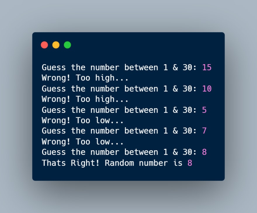 - I've implemented this game using Python programming language, using the random module to generate the random number and the input function to prompt you for your guesses.